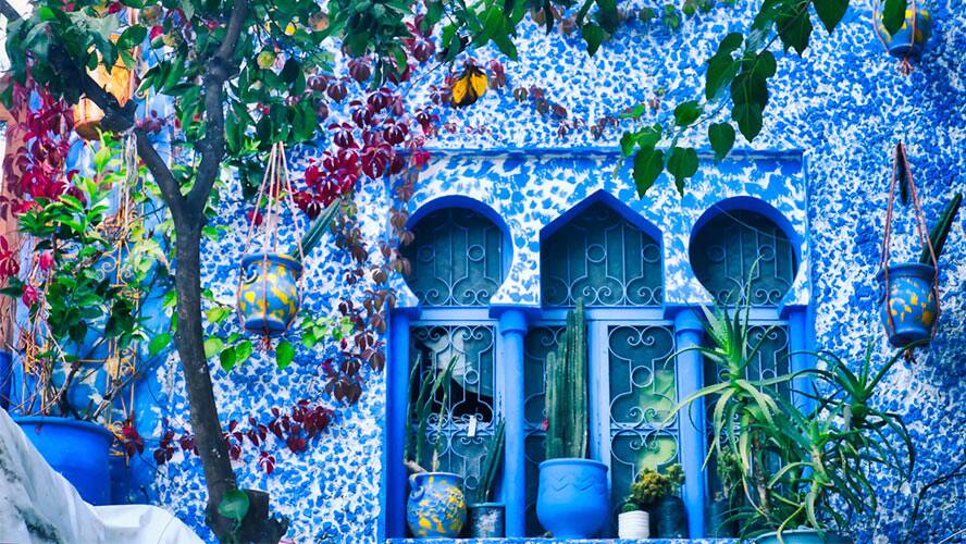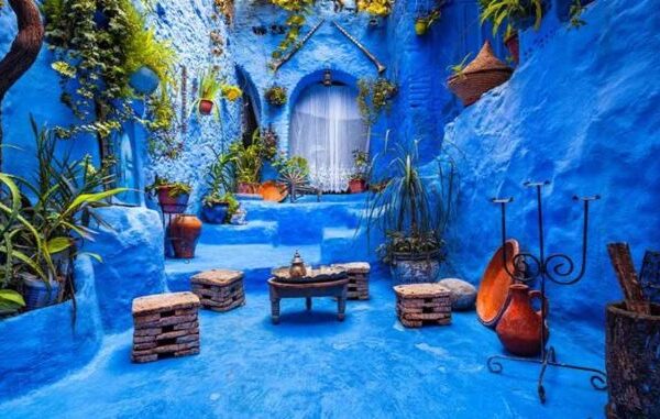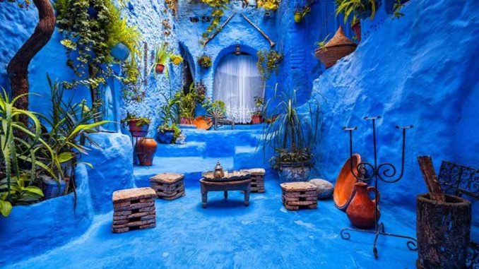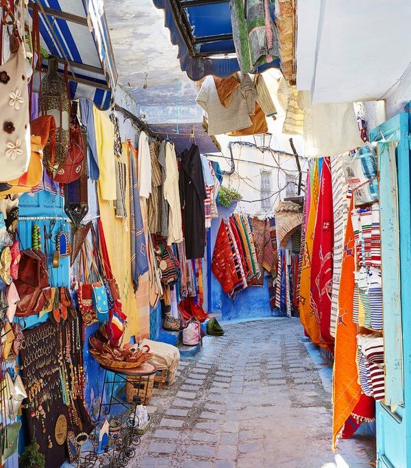 Street market in Chefchaouen Morocco small town in northwest Morocco known for its blue buildings